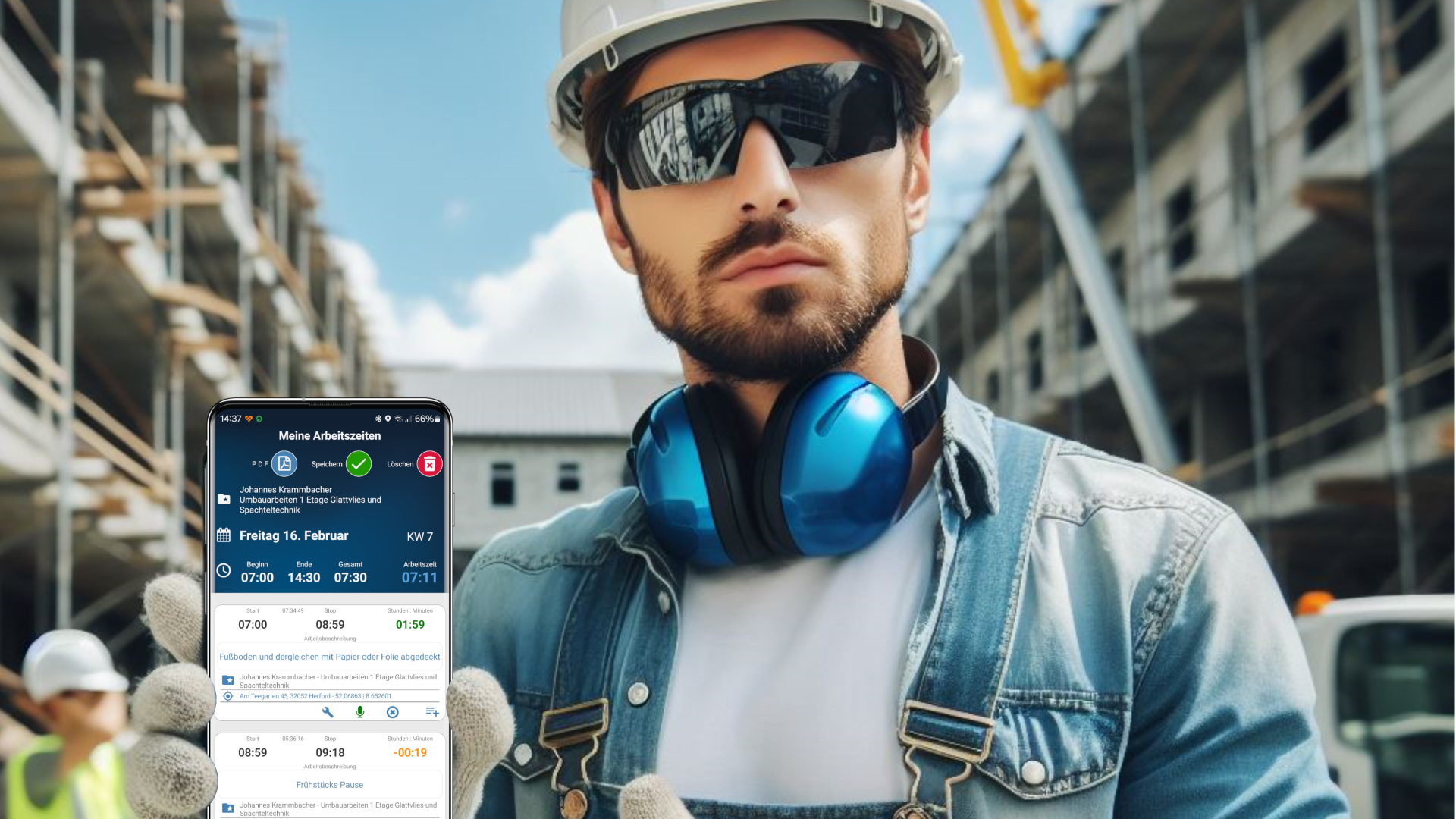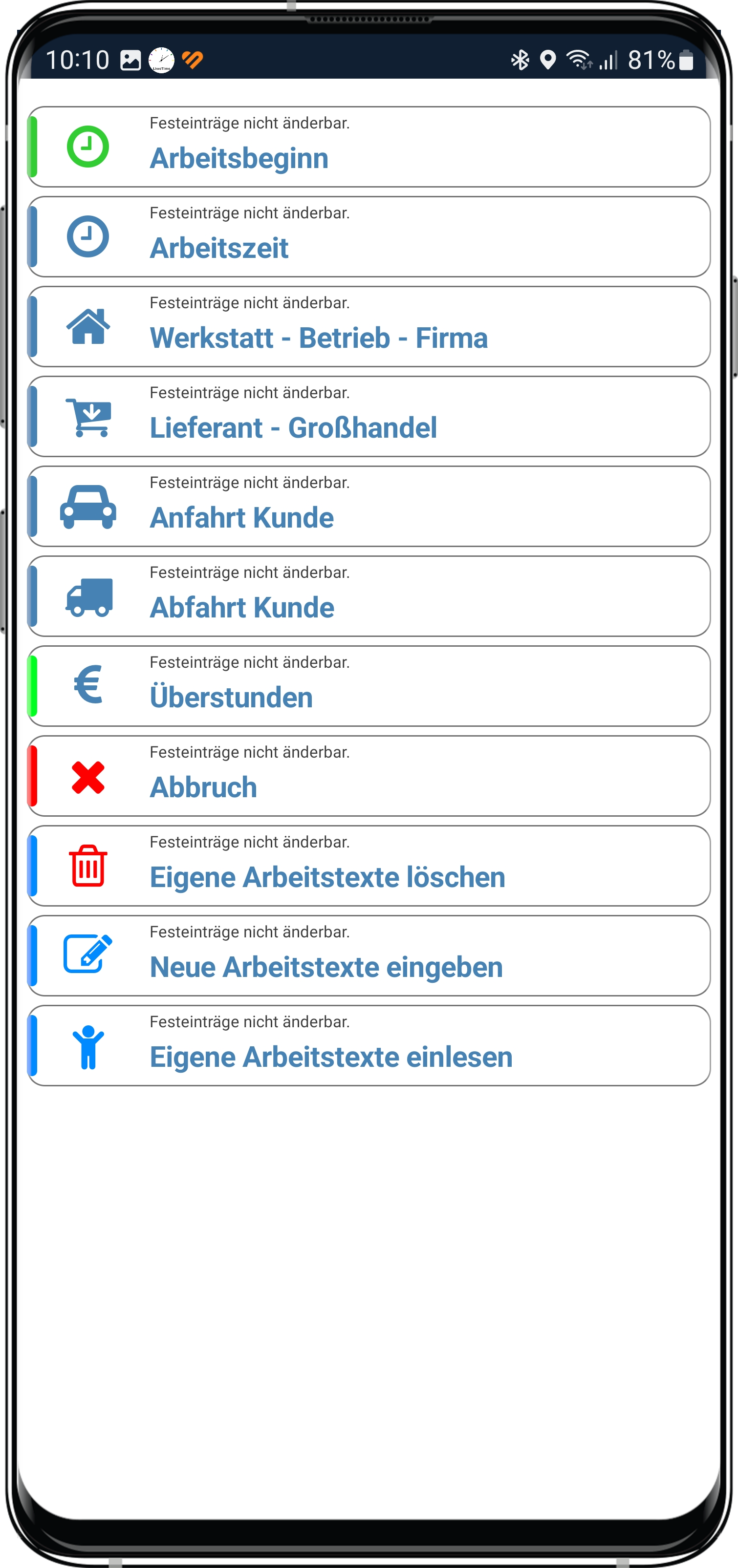 Durch drücken auf den Startbutton beginnt die Zeiterfassung. Änderungen sind jeweils möglich.